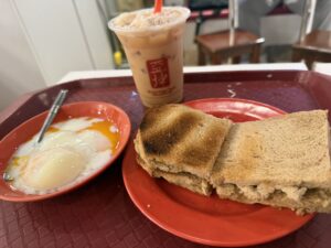 In the morning, Ya Kun offers several affordable breakfast sets. A typical set includes: